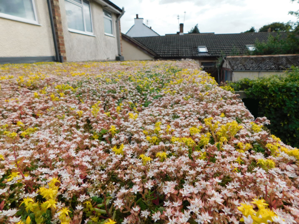 Fig.8. The light-weight extensive sedum green-roof system in full bloom in summer.