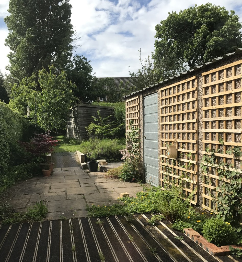 A green wall was planted to cover the walls of the stand-alone garage (Fig.6.). This consisted of native ivy shrubs which, when fully grown, will cover 8m2 of concrete wall. Some low growing shrubs were also planted consisting of box and heat tolerant Mediterranean herbs. This should prevent the South-facing concrete walls of the garage absorbing and storing heat, cooling the space, and will provide a new feeding resource and habitat for many invertebrates and birds.