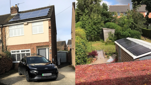 Annual Household Grid Electricity Energy Consumption reduced by 34%, emissions reduced by 0.8 tCO2e/Year, through efficiency and solar power used on-site and exported to the National Grid. Energy storage battery provides load shifting from peak-time to off-peak.